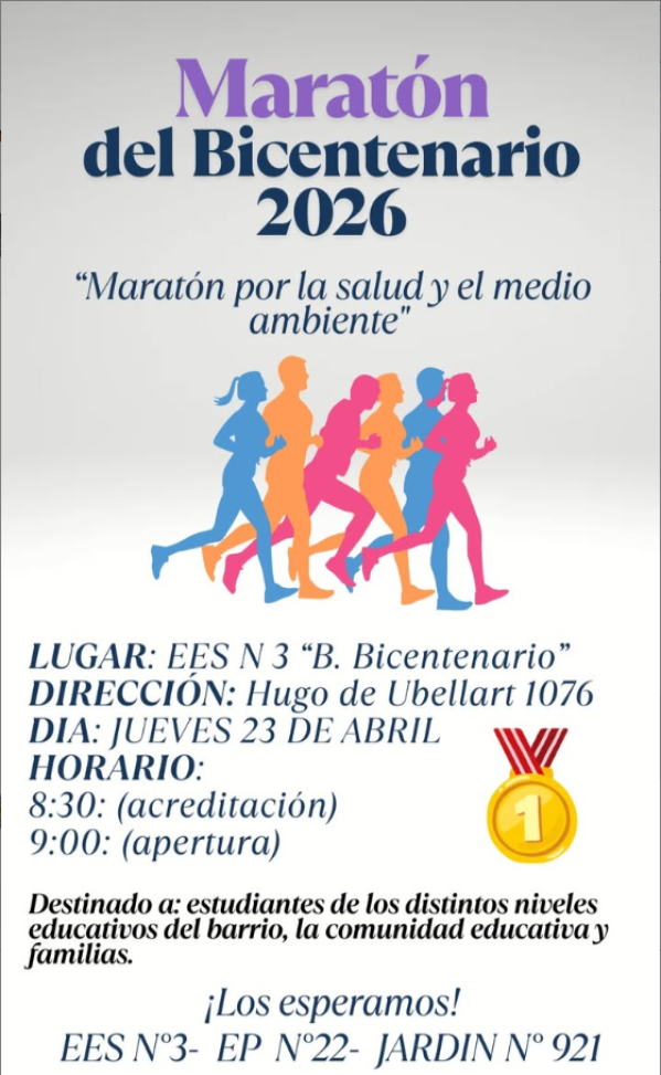 La jornada tendrá como punto de encuentro la sede de la Escuela Secundaria N.º 3 "B. Bicentenario" (Hugo de Ubellart 1076). Los horarios previstos para los participantes son: