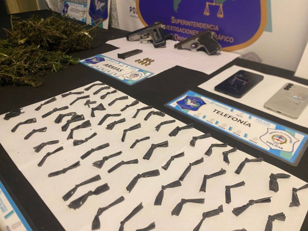 Durante el procedimiento, los efectivos incautaron 67 envoltorios de cocaína preparados para la venta, 524 gramos de marihuana en cogollos, dinero en efectivo, dos teléfonos celulares, un arma de fuego Bersa calibre 22 con numeración suprimida, una réplica de arma y elementos utilizados para fraccionamiento de sustancias.
