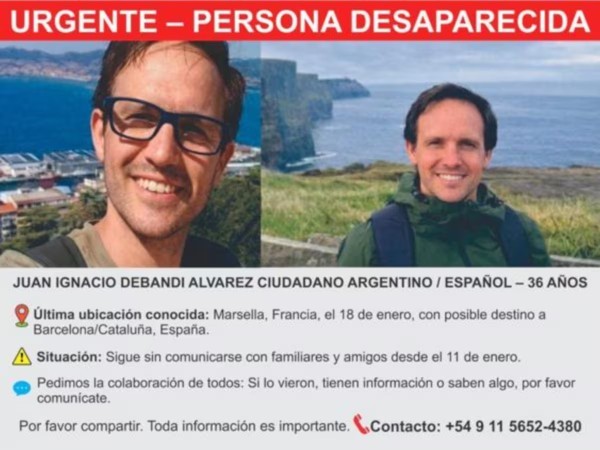 El misterio rodea la desaparición de Juan Ignacio Debandi Álvarez, un biólogo rodriguense de 36 años que se encontraba residiendo en Europa desde finales de 2021. Tras haber pasado por Barcelona e Irlanda, su rastro se perdió definitivamente a mediados de enero de este año en el sur de Francia. En diálogo con "Desalinea2" en su último episodio, su hermana Florencia detalló que el último contacto visual certero ocurrió el 11 de enero mediante una videollamada: "por eso nos centramos mucho en eso porque fue la última vez que físicamente lo vimos".